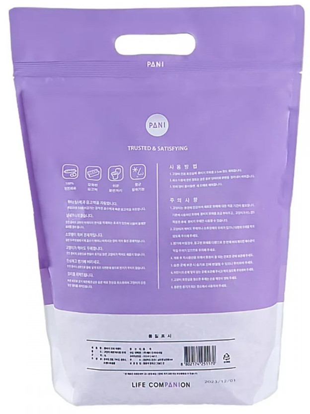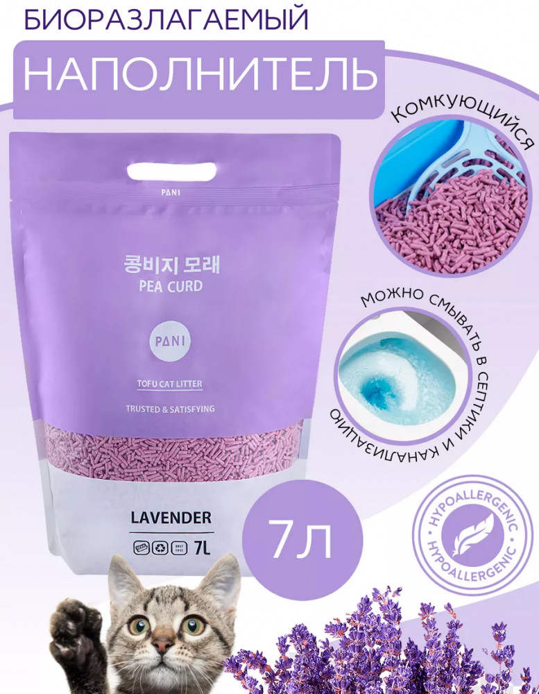 Pani Наполнитель биоразлагаемый «Лаванда»В данный момент этот товар отсутствует в продаже. Возможно, у нас найдется аналогичный или похожий товар здесь. «Pani» наполнитель тофу для кошачьего туалета — экологически чистый и комкующийся туалет для животных, разработанный специально для обеспечения максимального комфорта вашей кошки. Кошачий наполнитель отлично абсорбирует жидкость и удерживает неприятные запахи, обеспечивая чистоту и свежесть в лотке для кошек. Качество нашего наполнителя подтверждено лабораторными испытаниями, что говорит о его надежности и эффективности. Биоразлогаемый наполнитель позволяет экономить и не беспокоиться о частой смене туалета вашего питомца. Одним из основных преимуществ нашего наполнителя для кошачьего лотка является его способность не липнуть к шерсти и лапкам кошки благодаря тому, что мгновенно впитывает и остается сухим! Специальная не круглая форма гранул препятствует рассыпанию во время копания. Гранулы обеспылены, что делает их безопасными для дыхания и окружающей среды. Туалет для кошки экологически чистый и лишен вредных токсинов и аллергенов, что особенно важно для здоровья вашего любимца. Уникальный состав обладает антибактериальным эффектом, препятствуя размножению и росту бактерий. Благодаря созданной структуре элементов , впитываемость влаги и запахов является абсолютной. В отличие от других типов наполнителей, таких как древесный, соевый или глиняный, наш комкующийся наполнитель является во много раз более эффективным и экономичным. Он позволяет вам реже менять лоток, что экономит ваше время и средства. Заботьтесь о здоровье и комфорте своей кошки, выбирая качественные и безопасные продукты. Предоставьте вашему питомцу лучшие условия для жизни, и он ответит вам любовью и преданностью. |