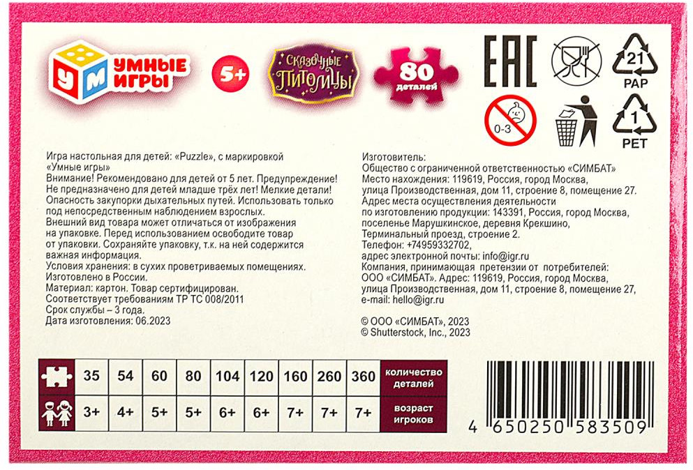 Умные игры Пазл «Сказочные питомцы»-30% +15