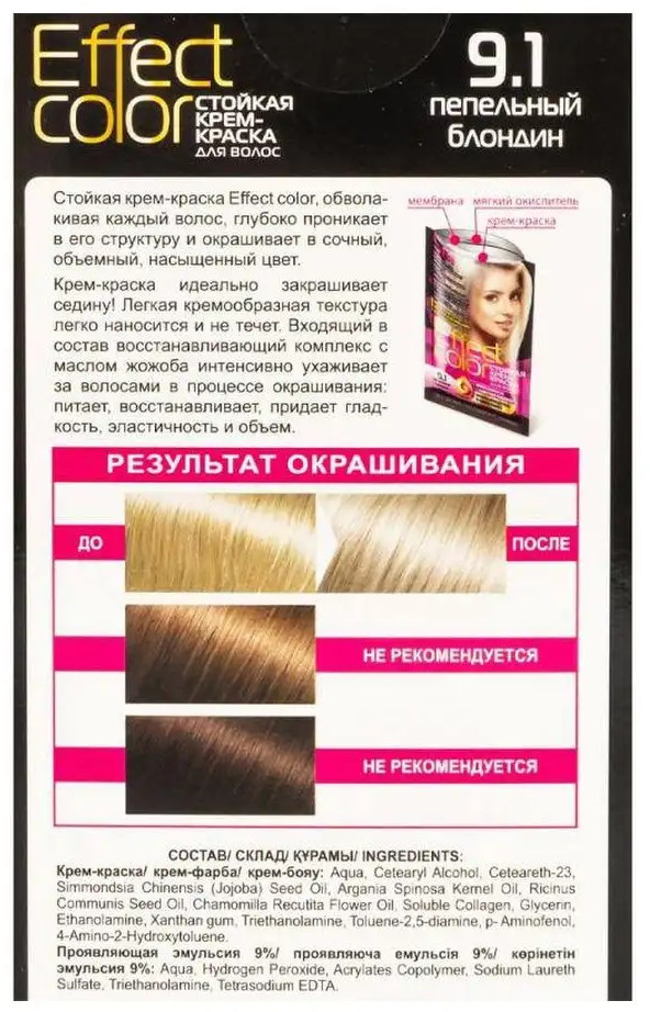 Effect color Крем-краска для волос, оттенок 9.1 Пепельный блондин