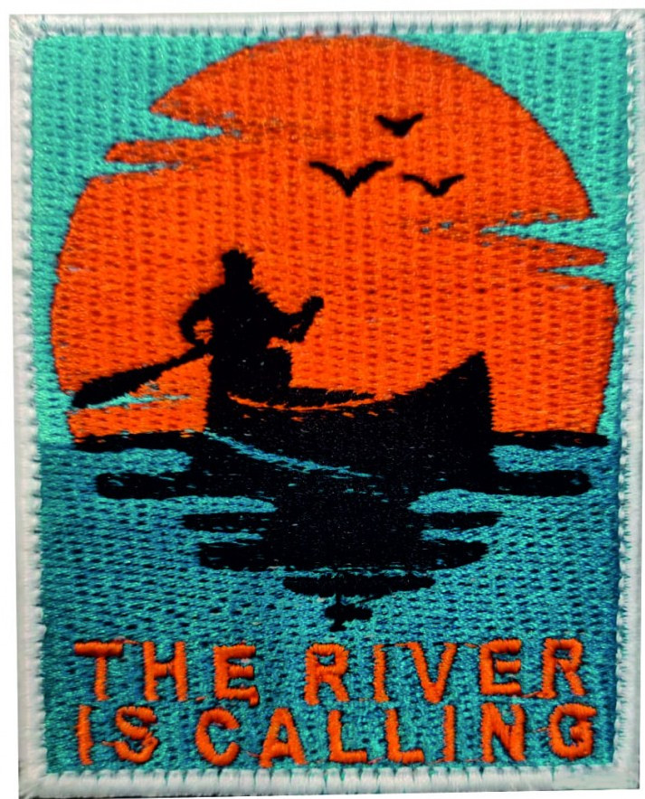 Шеврон 85 × 68 мм, «The river is calling» (Река зовет), выполнен вышивкой, на качественной ткани (фетр). На шевроне с обратной стороны пришиты крючки липы Velcro, для фиксации которых в комплекте поставляется ответная часть по размеру нашивки. Отличный аксессуар для тех, кто любит сплавы по реке, активный отдых.