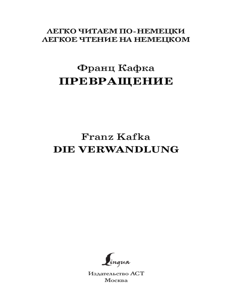 💳 Оплатить за товар можно при получении 🇰🇿 Есть бесплатная доставка по Казахстану от 1 дня 🎁 Копите бонусы с каждой покупки Серия: Легко читаем по-немецки В данном сборнике представлены два выдающихся произведения немецкого писателя Франца Кафки — «Превращение» и «Письмо отцу». |