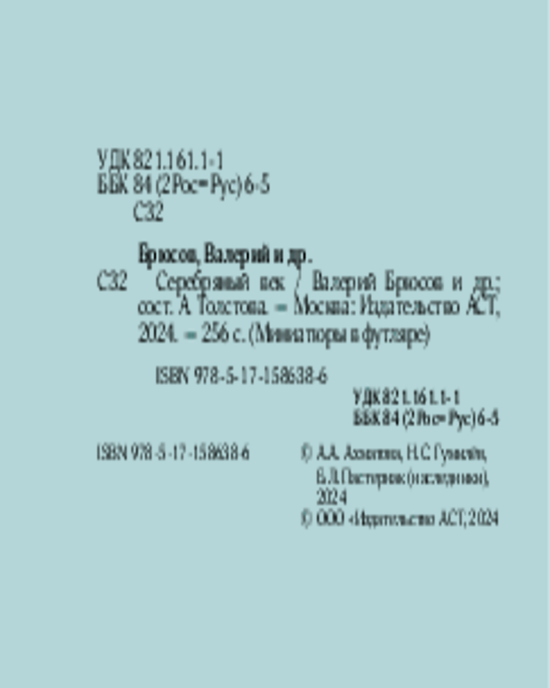💳 Оплатить за товар можно при получении 🇰🇿 Есть бесплатная доставка по Казахстану от 1 дня 🎁 Копите бонусы с каждой покупки Серия: Миниатюры в футляре Разочаровавшиеся идеалисты, мечтатели и жизнетворцы — представители поэтических течений конца 19-го столетия. Серебряный век стал эпохой новых веяний, затронувших не только литературу, музыку, живопись, но и другие сферы искусства. Это период ухода от традиционных творческих методов, формирования поэтических направлений. Мистика, подтексты и музыкальное звучание символистов А. Блока и К. Бальмонта. Простота языка, чёткость образов, отсылки к древним эпохам акмеистов Н. Гумилёва и О. Мандельштама. Эксперименты с языком и формой стихотворений футуристов И. Северянина и В. Маяковского составляют неотъемлемую часть русской поэзии, богатое наследие своего времени. |