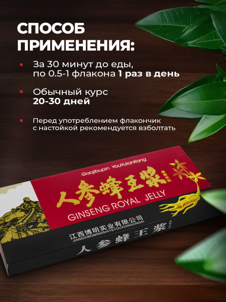 💳 Оплатить за товар можно при получении 🇰🇿 Есть бесплатная доставка по Казахстану от 1 дня 🎁 Копите бонусы с каждой покупки Серия: OptiHealth Настойка женьшеня оригинальная — концентрированная тонизирующая настойка на основе экстракта женьшеня с китайским лимонником, маточным молочком и мёдом, разработанная как растительная поддержка иммунитета для повышения общего тонуса и восстановления сил. Продукт традиционно применяется как адаптоген: приём настойки может помочь повысить работоспособность при умственных и физических нагрузках, смягчить симптомы хронической усталости, поддержать восстановление после болезней, операций и травм, а также дополнить спортивное питание в период интенсивных тренировок. |
