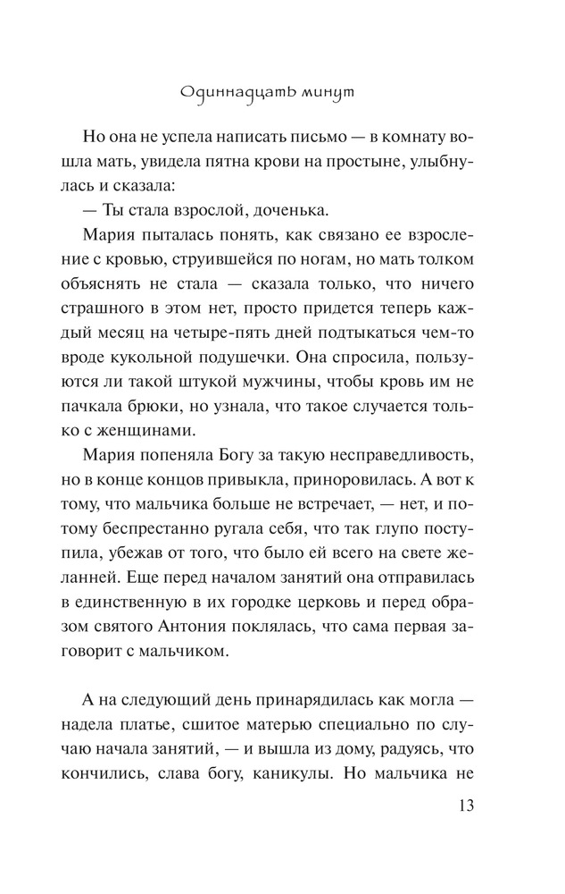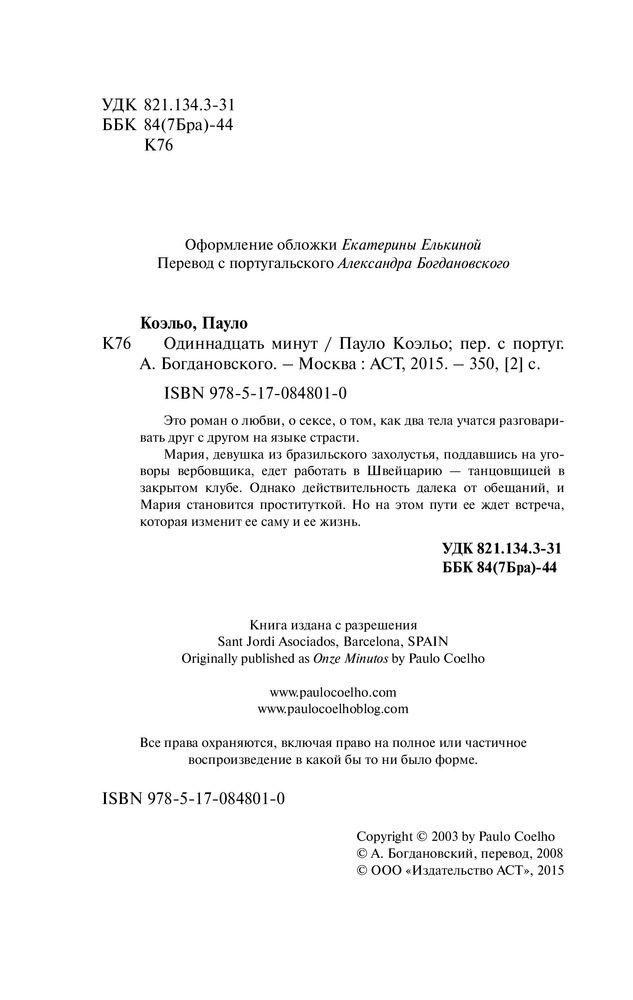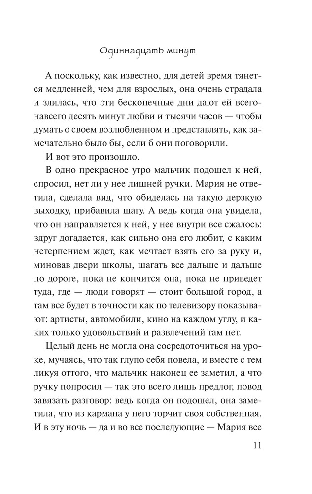 Одиннадцать минутВ данный момент этот товар отсутствует в продаже. Возможно, у нас найдется аналогичный или похожий товар здесь. Серия: Коэльо(best) Это роман о любви, о сексе, о том, как два тела учатся разговаривать друг с другом на языке страсти. |