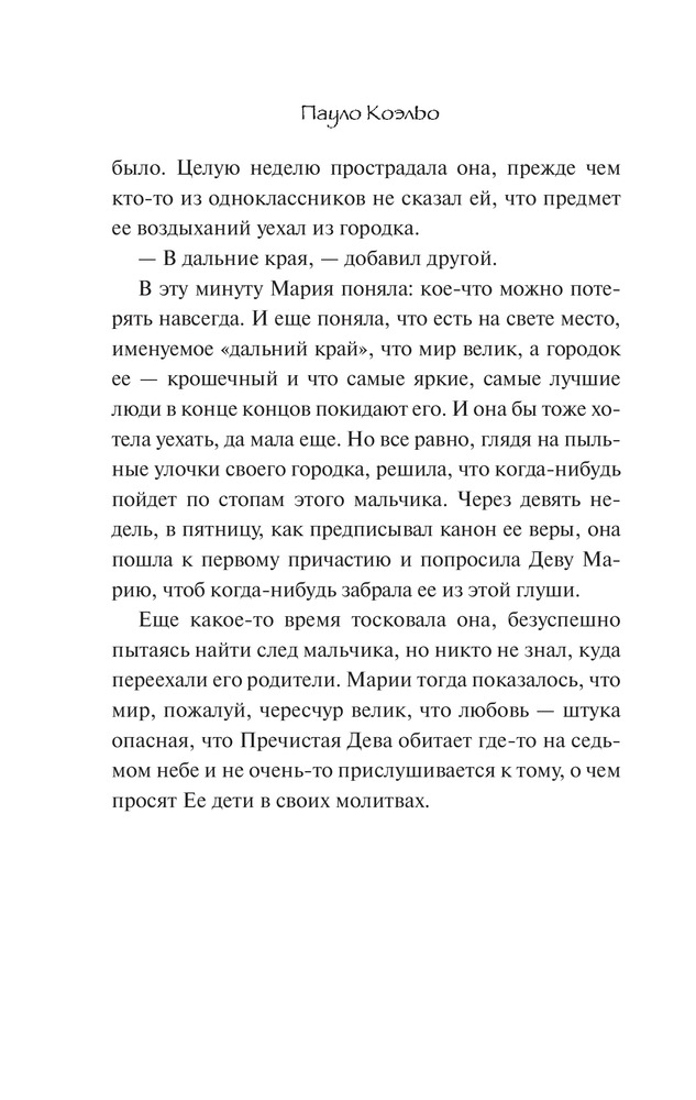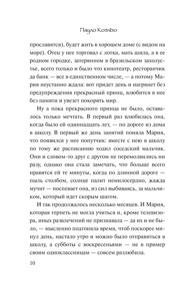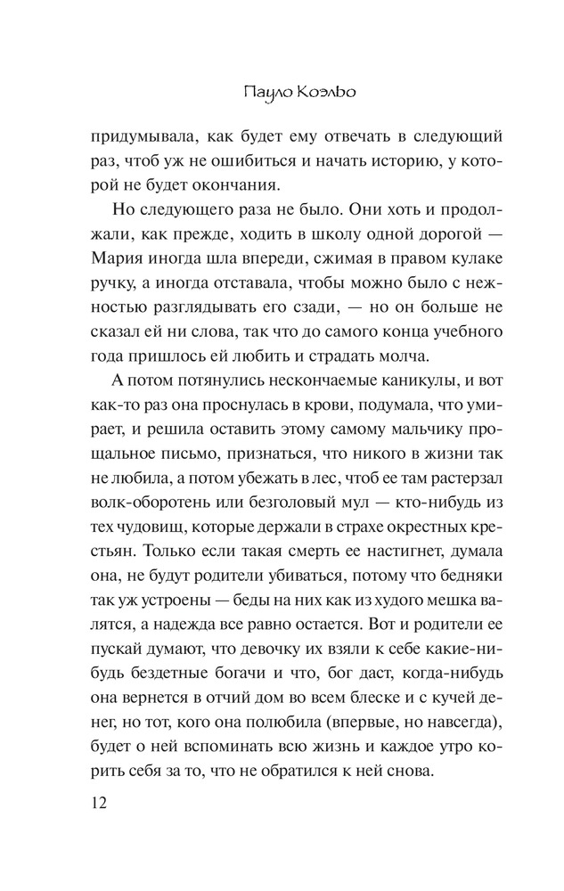 Великолепная книга, впрочем как и все произведения потрясающего писателя Пауло Коэльо. За весь сюжет ни разу не сложилось какого либо отрицательного впечатления о героине и автор уводит совсем в другие вопросы и смысл данного произведения.