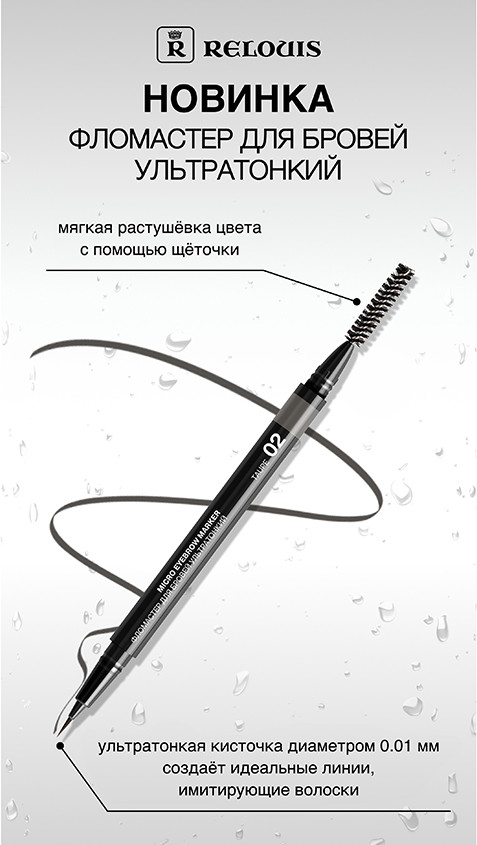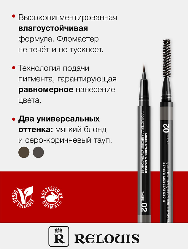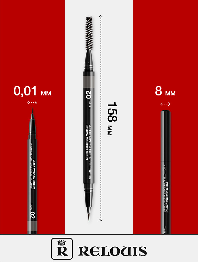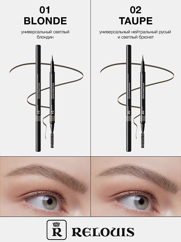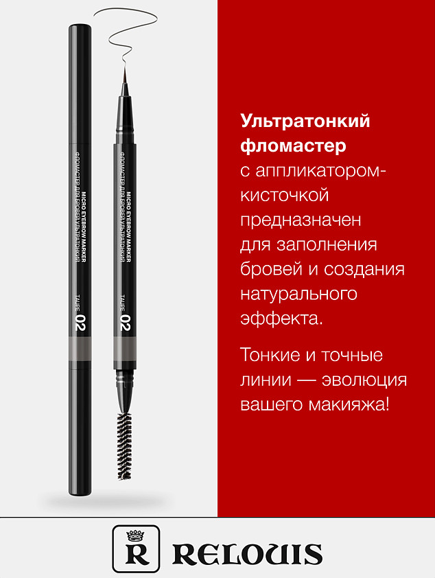 RELOUIS Фломастер для бровей ультратонкий, 02 Taupe