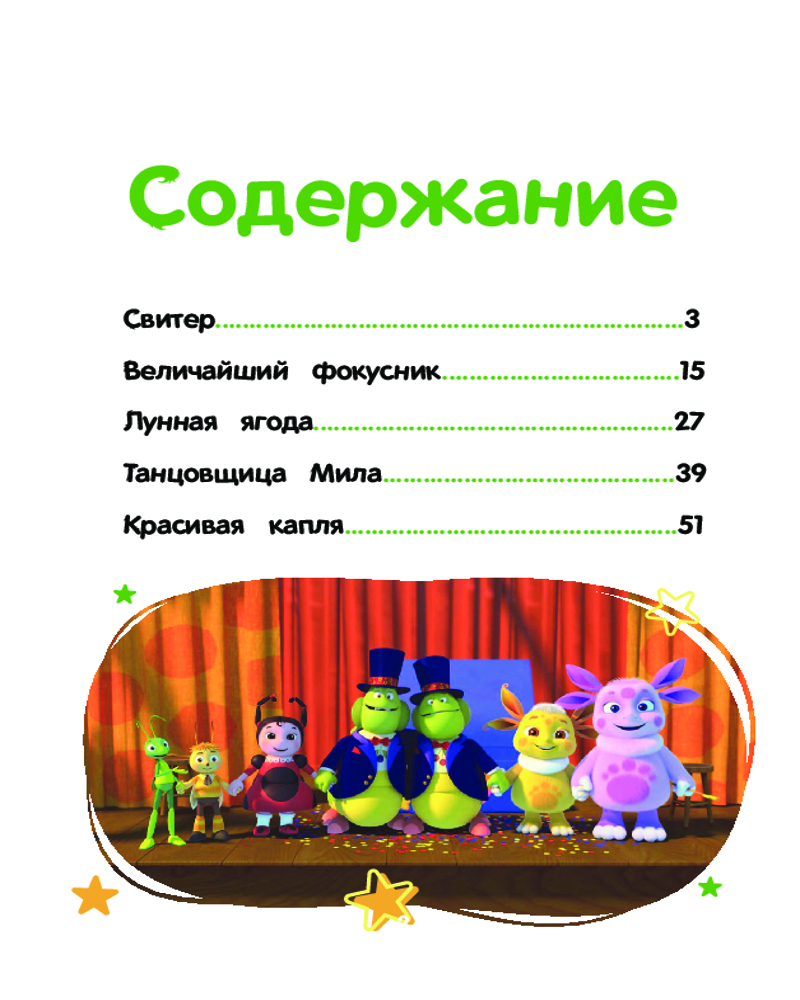 Лунтик. Величайший фокусникВ данный момент этот товар отсутствует в продаже. Возможно, у нас найдется аналогичный или похожий товар здесь. Серия: Лунтик. Книги по фильмам Встречайте сборник историй о героях популярного мультсериала «Лунтик» от анимационной студии «Мельница»! На этот раз ребята найдут куст редкой лунной ягоды, дедушка Шнюк сделает для внучки чудесный подарок, Вупсень и Пупсень станут настоящими фокусниками, Мила откроет в себе талант танцовщицы, а Луна вновь попадёт в неприятности из-за своего любопытства. |