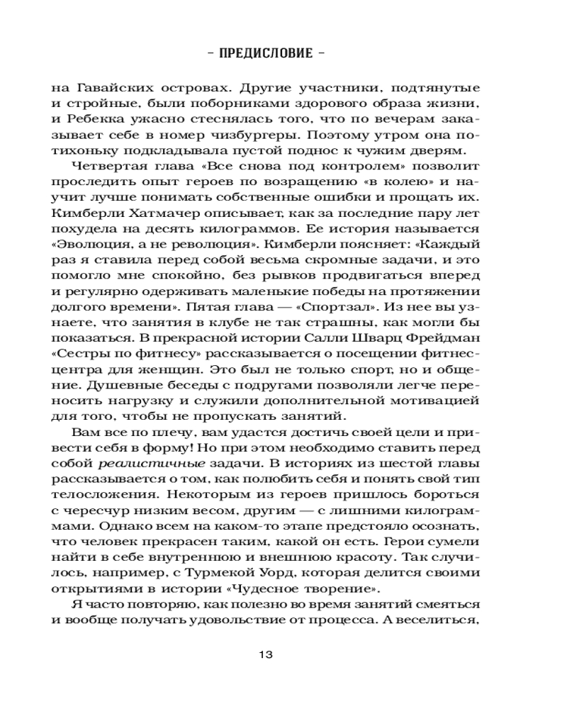 💳 Оплатить за товар можно при получении 🇰🇿 Есть бесплатная доставка по Казахстану от 1 дня 🎁 Копите бонусы с каждой покупки Серия: Куриный бульон для души (обложка) Хотите похудеть, начать правильно питаться, завести здоровые привычки, прийти в форму? Нет лучшей мотивации, чем услышать чужую историю. «Куриный бульон для души. Создай себя заново» — лучшая книга для тех, кто начинает здоровый образ жизни. Позитивные, практичные и целеустремленные рассказы о фитнесе и работе над собой подскажут, как полюбить себя, и вдохновят сделать шаг навстречу здоровому, подтянутому и красивому телу. Врачи предрекали, что после аварии Дэнни никогда не сможет ходить. Но они ничего не сказали про бег... Глория не могла похудеть, пока не стала бабушкой. Уход за младенцем оказался отличным способом сбросить лишнее. Пока друзья Бет боролись с лишним весом, она мечтала набрать несколько килограммов... Нэнси жила в плену собственного тела всю жизнь. Пока одно важное событие не изменило все... У Эмили был лишний вес, и она считала, что физические нагрузки — это не ее. Но однажды она нашла занятие, благодаря которому обрела уверенность в себе и подтянутый живот. На занятиях йогой Тереза тайно соревновалась с другими участниками. Но спустя несколько месяцев осознала, что больше не смотрит на окружающих. И вместо этого соревнуется с собой. И другие 95 поразительных историй, от которых вы не сможете оторваться. |