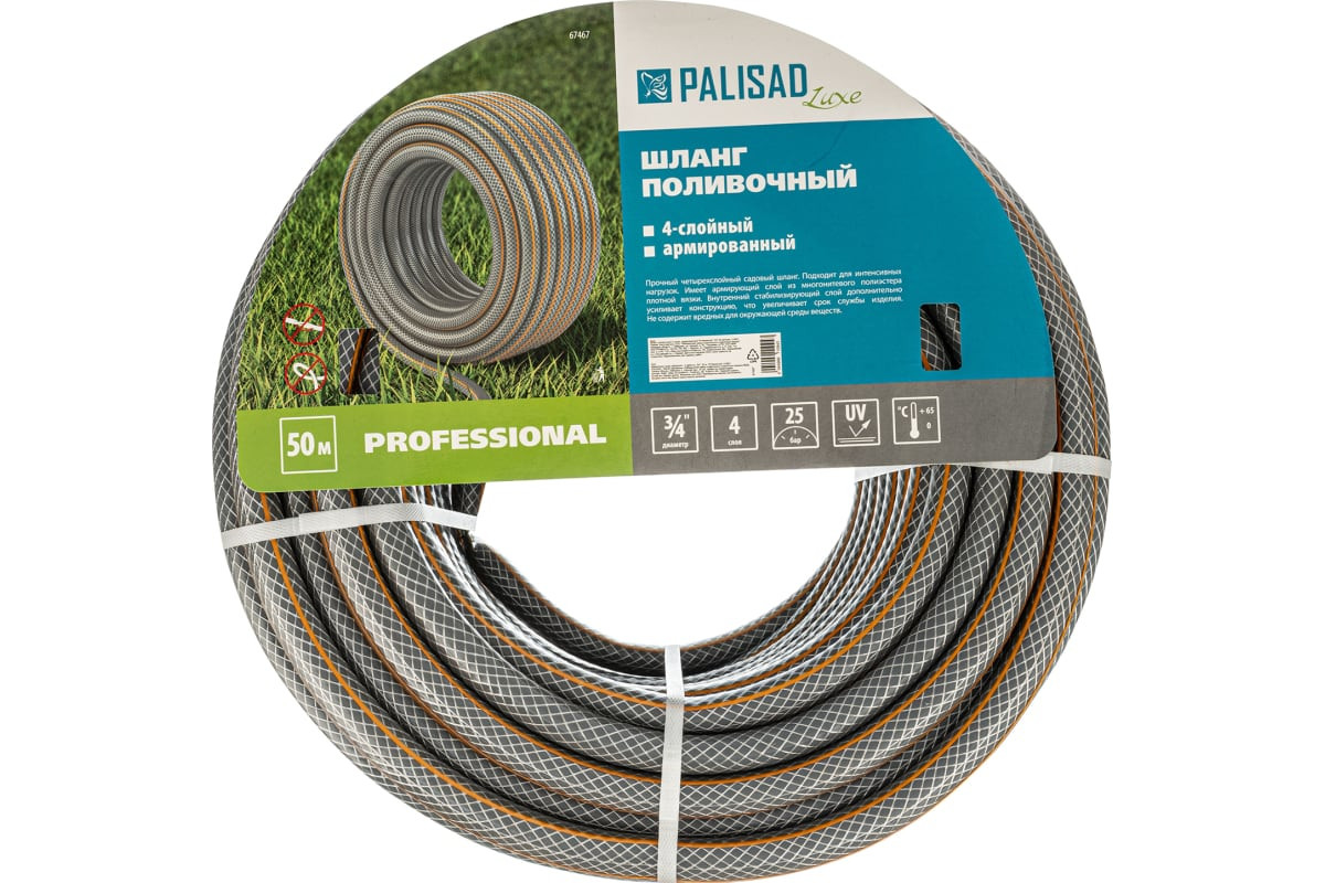 Palisad Шланг поливочный армированный «Professional»В данный момент этот товар отсутствует в продаже. Возможно, у нас найдется аналогичный или похожий товар здесь. Серия: Luxe 4-слойный армированный поливочный шланг Palisad Luxe «Professional» 67467 длиной 50 м и диаметром 3/4″" используется для организации системы полива на даче, в саду, скверах и небольших парках. С его помощью удобно проводить ежедневное орошение газонов и растений. Гибкий напорный шланг оптимально подходит для интенсивной эксплуатации. |
