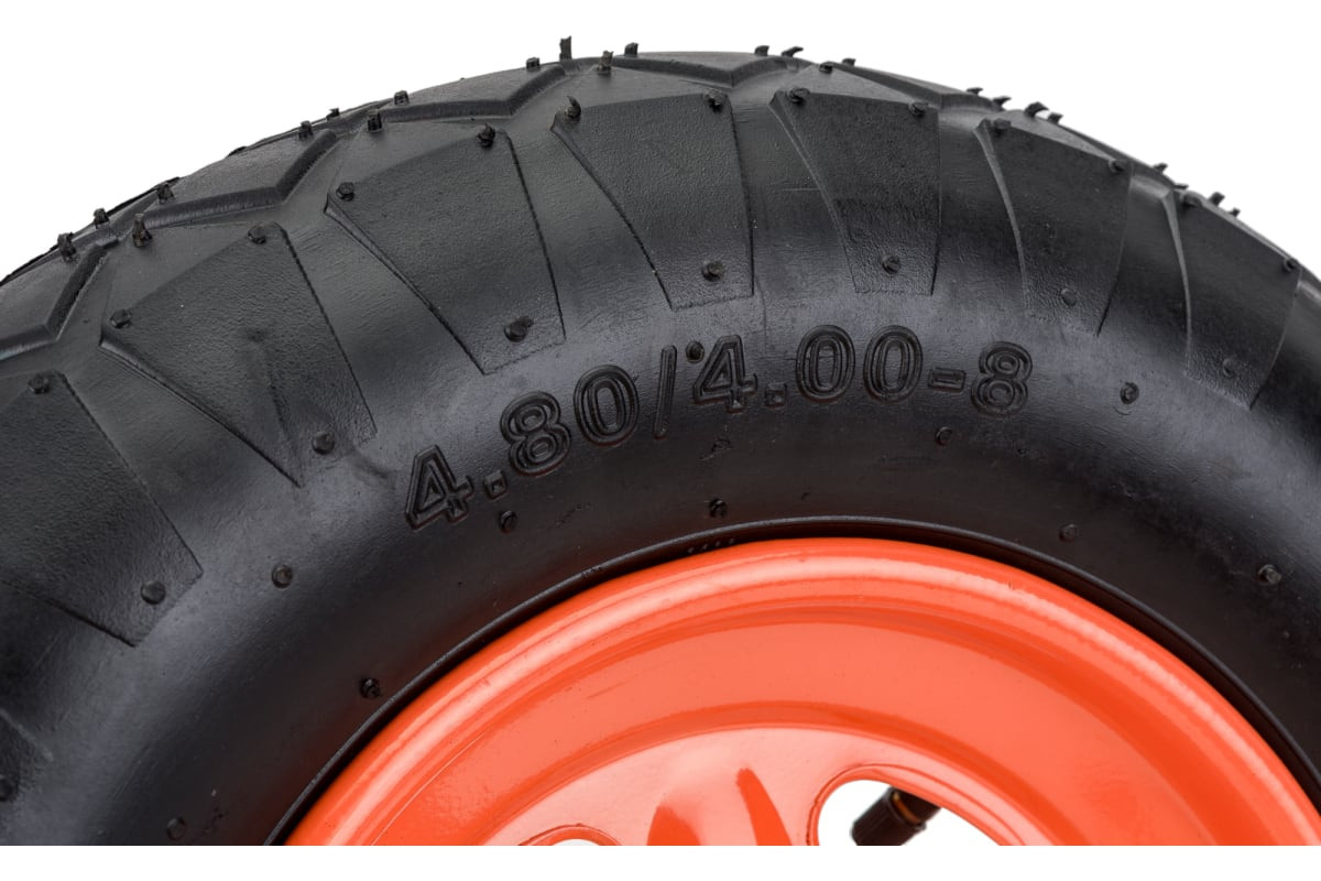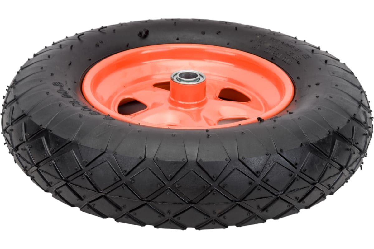Пневматическое колесо 4,80/4,00-8 Palisad «Звезда» 689575 диаметром 380 мм имеет длину оси 80 мм и внутренний диаметр подшипника 20 мм, устанавливается на тачку Сибртех 68936 для транспортировки грузов. Обладает хорошей проходимостью, а благодаря стальным подшипникам выдерживает нагрузки до 320 кг.