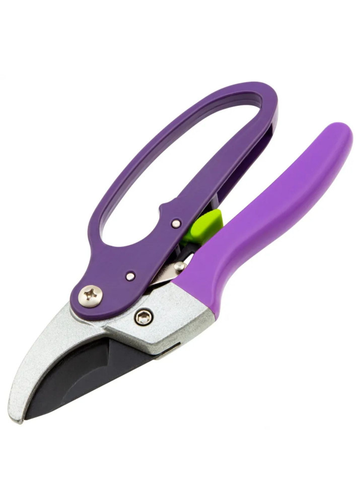 • безопасность — гарда на нижней рукоятке защищает пальцы от травм, фиксатор удерживает лезвия в сомкнутом положении во время хранения и транспортировки;
