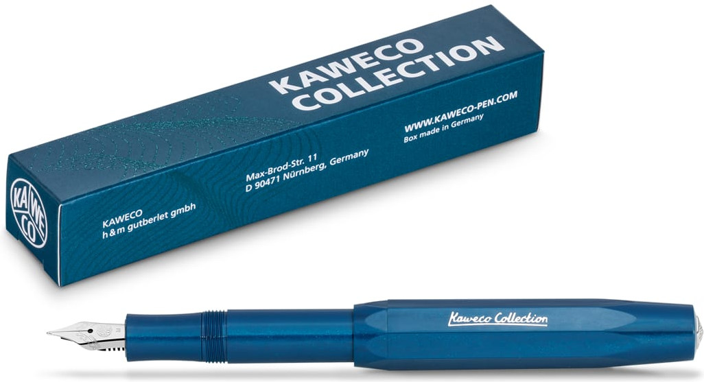 Kaweco Ручка перьеваяВ данный момент этот товар отсутствует в продаже. Возможно, у нас найдется аналогичный или похожий товар здесь. Серия: Collection Винтажная перьевая ручка от Kaweco (дизайн серии остался неизменным с 1936 года). Специальный выпуск 2023 года в корпусе из искрящегося темно-бирюзового пластика. Этот цвет отсылает к удивительному эффекту биолюминесценции, который можно наблюдать в заливе Тояма (Япония). |