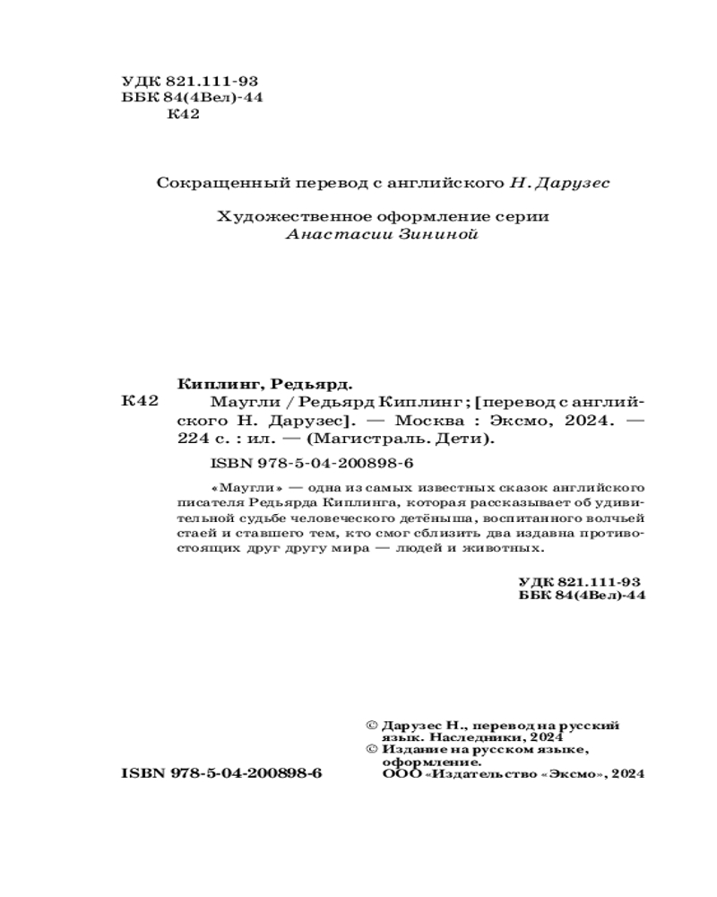 💳 Оплатить за товар можно при получении 🇰🇿 Есть бесплатная доставка по Казахстану 🎁 Копите бонусы с каждой покупки Серия: Магистраль. Дети «Маугли» это история о маленьком мальчике, который после потери своих родителей был принят стаей диких животных и вырос в джунглях. Воспитывался и учился законам джунглей у мудрого медведя Балу и жесткого пантера Багиры. Маугли переживает множество приключений, вступает в борьбу с хитрым и опасным тигром Шерханом. С течением времени он осознает, что несмотря на всю свою любовь к джунглям, он принадлежит к человеческому виду и должен вернуться к людям. |