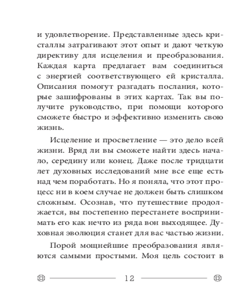 💳 Оплатить за товар можно при получении 🇰🇿 Есть бесплатная доставка по Казахстану 🎁 Копите бонусы с каждой покупки Серия: Карты для гаданий. Таро Используйте эту колоду-оракул из 52 карт с разными кристаллами, чтобы преобразиться и получить вдохновение в своей повседневной жизни. Колода позволит вам обращаться к мудрости камней и кристаллов, пронизанной энергией Матери-Земли, если сейчас у вас под рукой нет самих камней. На каждой карте представлены красочные фотографии самых наполненных энергией кристаллов, а также краткое описание сильных способностей каждого камня и их основной мудрости и совета. От амазонита до аквамарина, от сердолика до нефрита, от лунного камня до розового кварца — каждый кристалл несет в себе энергию, которая может помочь вашему духу уникальным и особенным образом. Независимо от того, переживаете ли вы неспокойное время в отношениях, чувствуете ли вы финансовую задержку или испытываете ментальный блок на работе, ваша интуиция поможет вам выбрать карту, которая вам нужна, чтобы открыть ясность, которой жаждет ваш дух. |