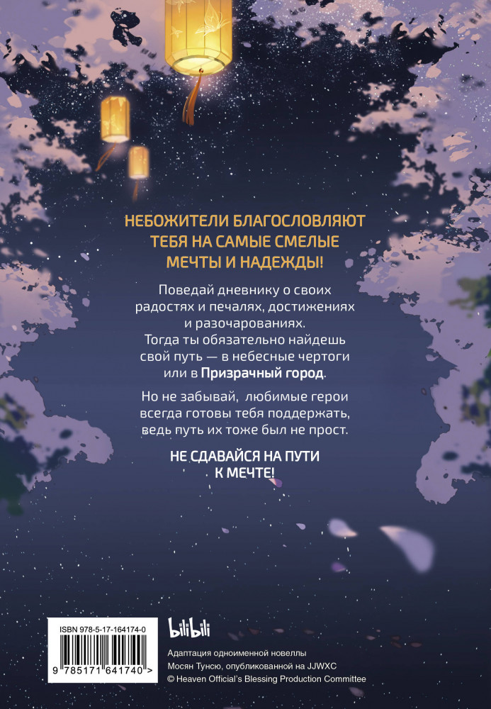 Дневник надежды «Благословение небожителей»В данный момент этот товар отсутствует в продаже. Возможно, у нас найдется аналогичный или похожий товар здесь. Серия: Благословение небожителей Небожители благословляют тебя на смелые мечты и надежды! Поведай дневнику о своих радостях и печалях, достижениях и разочарованиях. Тогда ты обязательно найдешь свой путь — в небесные чертоги или в Призрачный город. И пусть любимые герои поддержат тебя, ведь путь их тоже был непрост. Не сдавайся на пути к мечте! |