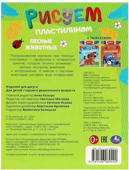 💳 Оплатить за товар можно при получении 🇰🇿 Есть бесплатная доставка по Казахстану от 1 дня 🎁 Копите бонусы с каждой покупки Серия: Рисуем пластилином Активити «Лесные животные» из серии «Рисуем пластилином» ТМ «УМка» — отличный подарок для творческих малышей: |