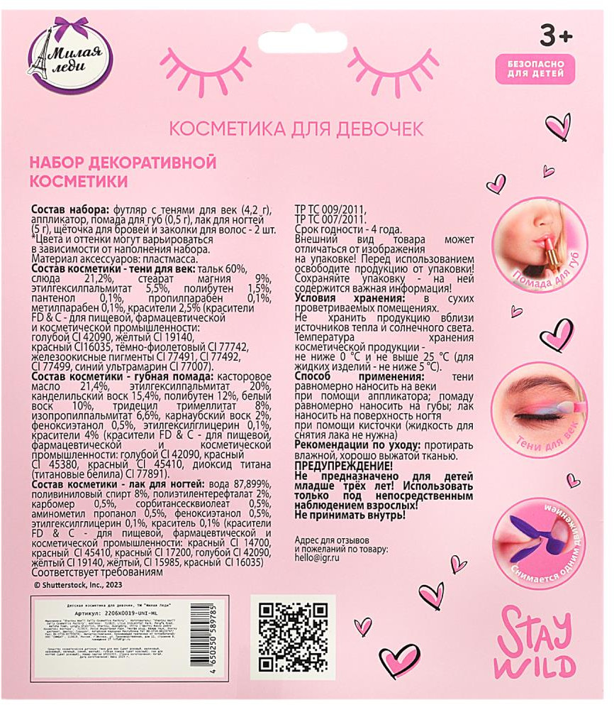💳 Оплатить за товар можно при получении 🇰🇿 Есть бесплатная доставка по Казахстану от 1 дня 🎁 Копите бонусы с каждой покупки Девочки в любом возрасте хотят быть красивыми. Специально для юных модниц был разработан этот набор, состоящий из теней для век, лака для ногтей и помады для губ. Маленькая принцесса обязательно оценит красочные цвета и модную упаковку. Развивайте чувство стиля и вкуса, учите девочку создавать свой неповторимый образ вместе с косметикой ТМ «Милая леди». |