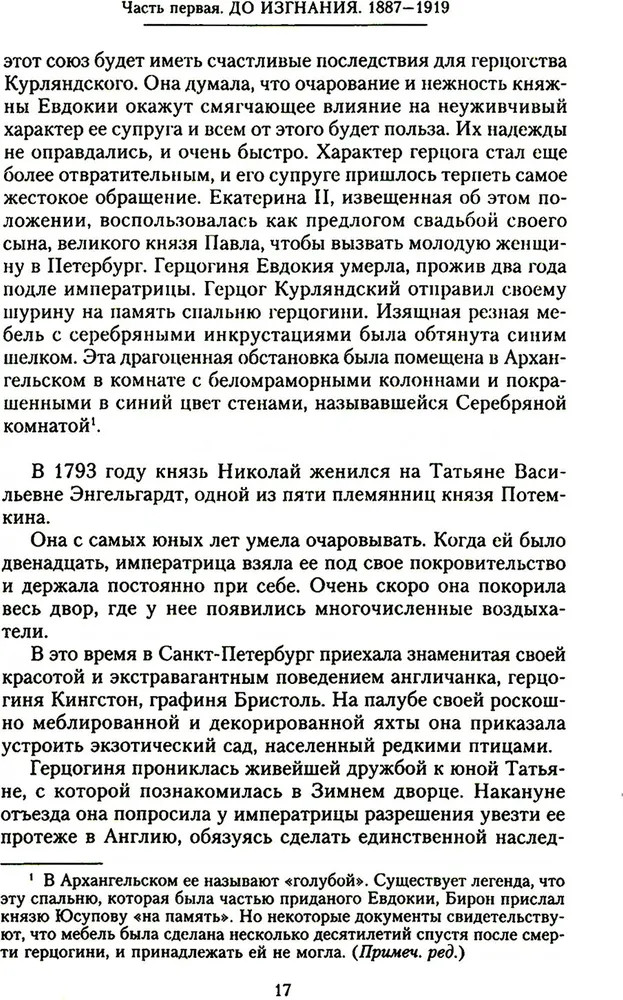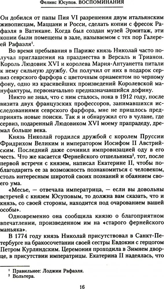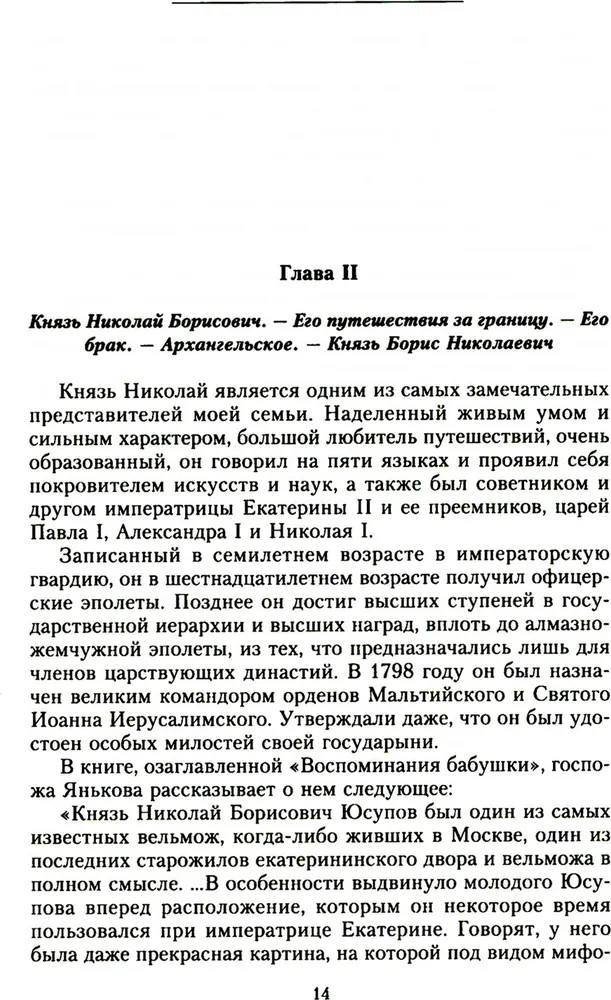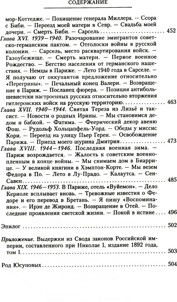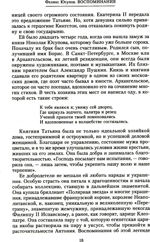 ВоспоминанияВ данный момент этот товар отсутствует в продаже. Возможно, у нас найдется аналогичный или похожий товар здесь. Князь Феликс Феликсович Юсупов — аристократ, последний из богатейшего рода Юсуповых, красивый, изящный, образованный человек и мастер эпатажа, участник убийства Распутина, рассказывает историю своего рода и собственной жизни. С нежностью и любовью он пишет о матери, знаменитой красавице княгине Зинаиде, и с уважением, но сдержанно об отце — гвардейском офицере, о дружбе с братом и его ранней гибели. Увлекательно и остроумно автор описывает бурно проведенную юность, жизнь семьи в Архангельском и в столичных особняках, подготовку к праздникам, убранство поместий, роскошь, которая окружала его с рождения. А затем революция, утрата всего достояния, бегство за границу и жизнь в изгнании со всеми ее лишениями и тоской по Родине. Впервые полное издание на русском языке. |