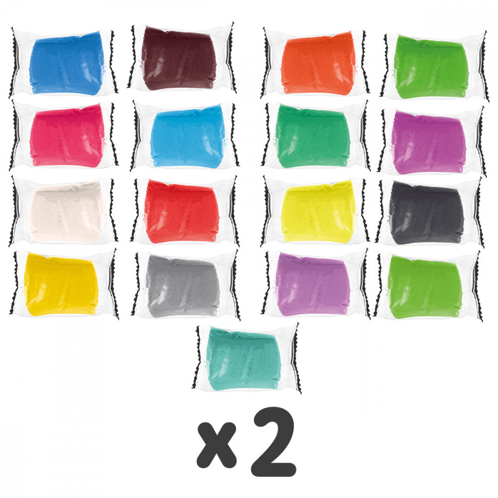 • 17 ярких цветов по 2 бруска (фиолетовый, оранжевый, белый, черный, красный, синий, изумрудный, желтый, неоновый голубой, неоновый салатовый, неоновый желтый, неоновый розовый, серый, салатовый, мятный, фуксия, бордовый);
