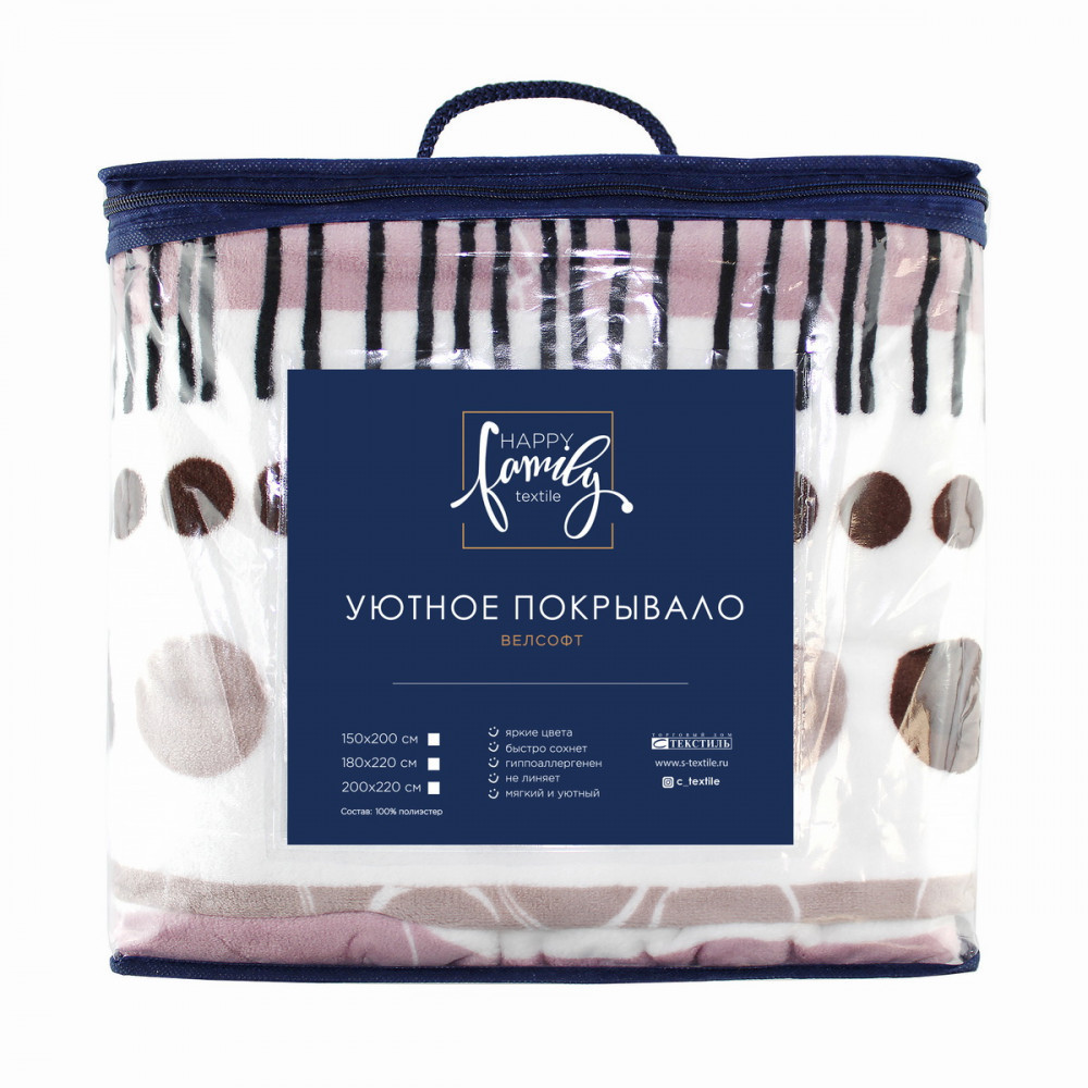 Покрывало ТМ «Happy Family» выполнен из материала велсофт, очень мягкий и приятный на ощупь. Велсофт отлично сохраняет тепло и не отводит его от тела, плед достаточно легкий и не толстый, но при этом очень теплый, может использоваться в качестве осеннего, зимнего или весеннего. А в теплую погоду заменит легкое одеяло, флисовое, стеганное или вязаное покрывало. Декоративное покрывало отлично впишется в дизайн любой комнаты и украсит интерьер.