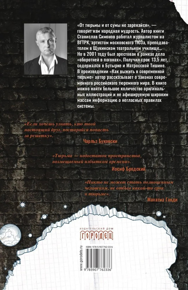 Как выжить в современной тюрьме. Книга 1В данный момент этот товар отсутствует в продаже. Возможно, у нас найдется аналогичный или похожий товар здесь. Книга представляет собой руководство по выживанию в современной тюрьме. По существу, это азбука «первохода». В книге можно найти большое количество оригинальных иллюстраций и юридических ссылок. Произведение написано на основе уникального опыта и содержит закрытую информацию, которая не оставит равнодушным даже скептически настроенного читателя. Высокую профессиональную оценку книге дал бывший зам. начальника Бутырского централа, подполковник внутренней службы доктор Кратов Д.Б. |
