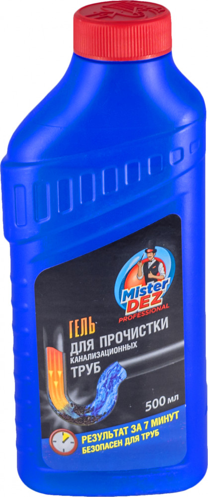 Mister Dez Professional — это эффективный и безопасный способ раз и навсегда покончить с забитыми стоками на кухне и в ванной. Концентрированная формула проникает к месту засора даже в стоячей воде, быстро и легко растворяет жир, остатки пищи, бумагу, волосы, убивает бактерии и нейтрализует неприятные запахи. Очиститель Mister Dez эффективен только там, где это необходимо: он устраняет сложные и труднодоступные заторы в канализации, но при этом подходит для всех видов пластиковых и металлических труб. Регулярное применение средства от засоров труб в целях профилактики поможет избежать механической чистки и обеспечит бесперебойную работу сливов.