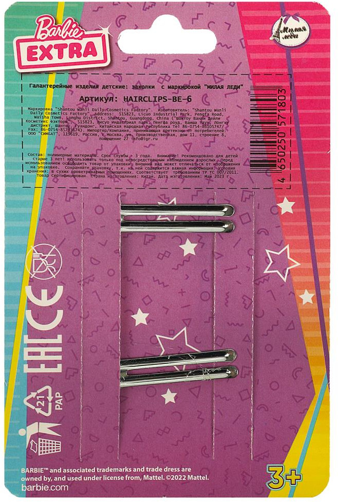 💳 Оплатить за товар можно при получении 🇰🇿 Есть бесплатная доставка по Казахстану от 1 дня 🎁 Копите бонусы с каждой покупки Серия: Barbie Extra Набор аксессуаров для волос «Barbie Extra» ТМ «Милая леди» непременно понравится маленькой принцессе. Девочки всегда хотят быть красивыми, а эти милые банты в стиле Барби помогут разнообразить ежедневный образ юной леди. Аксессуары хорошо держатся на волосах и позволяют создавать самые разные причёски. Пусть образ вашей модницы будет ярким и эффектным вместе с ТМ «Милая леди». |