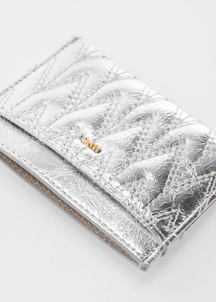 Стеганый холдер с логотипом. Маленький размер. Изделие простегано. Множество прорезей для пластиковых карт. Без застежки. Рельефный логотип. Подкладка.