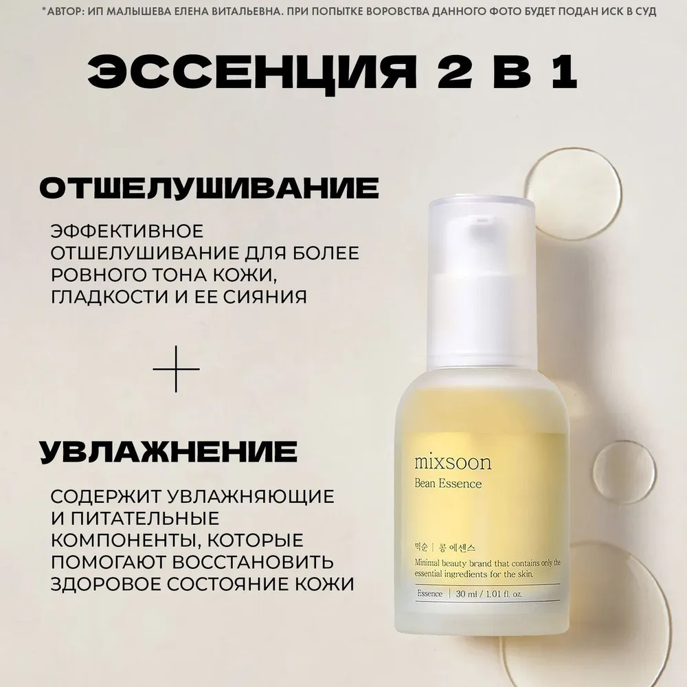 Mixsoon Эссенция для лица с экстрактом соевых бобов «Bean Essence»