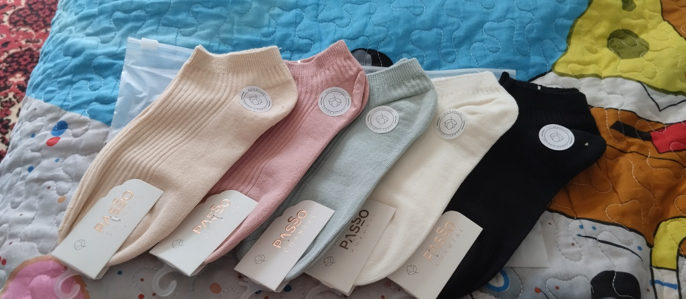 носочки пришли в пакете с зип-застежкой - очень удобно, цвета нежные, на ощупь приятные, на 37-38 сели очень хорошо рекомендую хотела добавить больше фото, но система позволяет загрузить только 4 фото, хотя пишут что можно 20