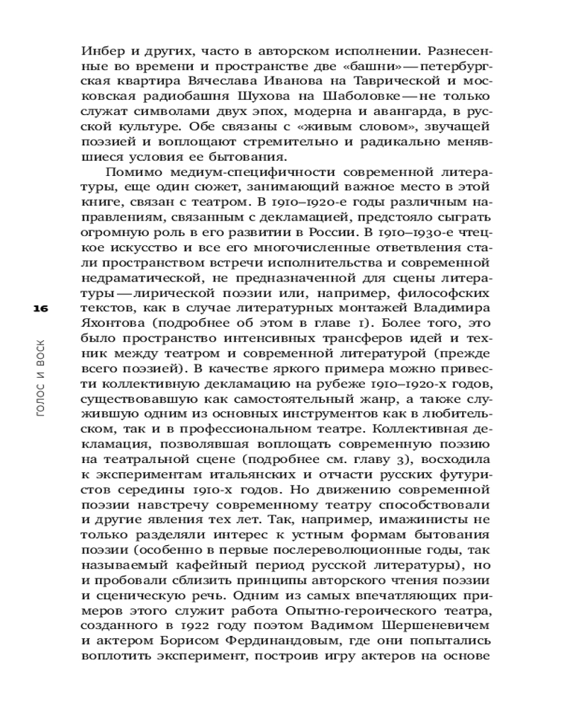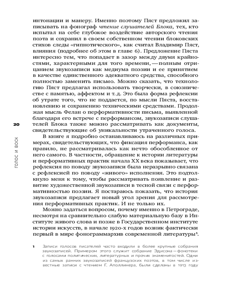 Голос и воск. Звучащая художественная речь в России в 1900-1930-е годыВ данный момент этот товар отсутствует в продаже. Возможно, у нас найдется аналогичный или похожий товар здесь. Серия: История звука Звукозаписи, как и другие способы документации «живого» исполнения, часто противопоставляются самими событиям как лишенные аутентичности артефакты. Книга Валерия Золотухина стремится опровергнуть эту логику; исследуя традиции и практики поэтической декламации в России начала XX века, автор предлагает новаторский взгляд на историю литературы и перформативных искусств сквозь призму медиатеории. Опираясь на многолетнее изучение аудиальных архивов и уделяя внимание обзору новаторских исследований звучащей литературы, Золотухин анализирует пограничные перформативные жанры (например: агитационный самодеятельный театр и коллективная декламация), а также эволюции техник слушания в один из наиболее интенсивных периодов истории западноевропейской культуры. В результате перед нами оригинальная работа на стыке филологии, исследований перформанса и медиа, которая предлагает не прочесть, а услышать историю русской литературы начала ХХ века. Еще одна задача, которую ставит перед собой автор, — пролить свет на механизмы культурной памяти. Ведь помехи и треск фонографического валика со временем стали условием для того, чтобы мы поверили в подлинность голосов из прошлого. |