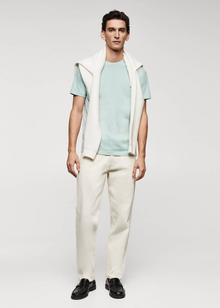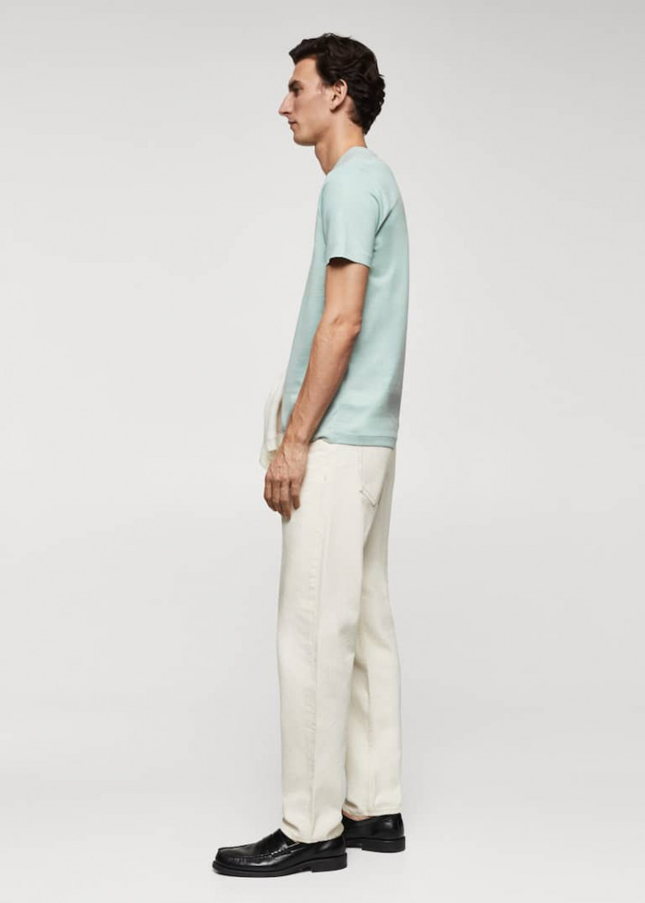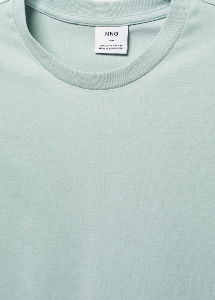 Ткань 100% хлопок. Хлопковый трикотаж стрейч. Slim fit. Круглый вырез горловины. Короткие рукава. Прямой низ.