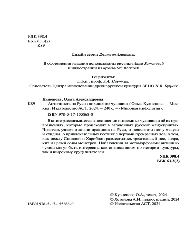 💳 Оплатить за товар можно при получении 🇰🇿 Есть бесплатная доставка по Казахстану 🎁 Копите бонусы с каждой покупки Серия: Мировая мифология В книге рассказывается о похищении иноземных чудовищ и об их превращениях, которые происходят в загадочных русских манускриптах. Читатель узнает о жизни драконов на Руси, о появлении ног у медузы и ехидны, о привлекательных бестиях с чертами прекрасных дев, о том, как между Сциллой и Харибдой разместились трехголовый пес, гидра, кит и целый сонм монстров. Наблюдения за метаморфозами античных чудищ могут быть интересны как специалистам по истории культуры, так и широкому кругу читателей. |