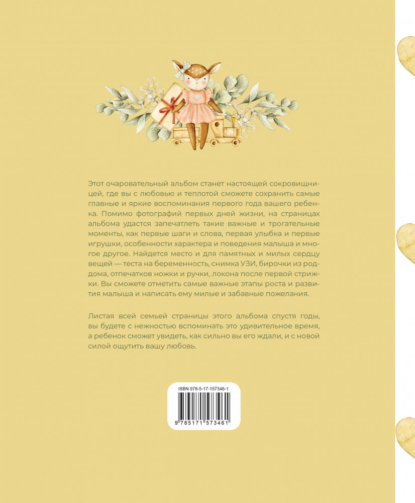 💳 Оплатить за товар можно при получении 🇰🇿 Есть бесплатная доставка по Казахстану от 1 дня 🎁 Копите бонусы с каждой покупки Серия: Семейный альбом Этот очаровательный альбом станет настоящей сокровищницей, где вы с любовью и теплотой сможете сохранить самые главные и яркие воспоминания первого года вашего ребенка. Помимо фотографий первых дней жизни, на страницах альбома удастся запечатлеть такие важные и трогательные моменты, как первые шаги и слова, первая улыбка и первые игрушки, особенности характера и поведения малыша и многое другое. Найдется место и для памятных и милых сердцу вещей — теста на беременность, снимка УЗИ, бирочки из роддома, отпечатков ножки и ручки, локона после первой стрижки. Вы сможете отметить самые важные этапы роста и развития малыша и написать ему милые и забавные пожелания. Листая всей семьей страницы этого альбома спустя годы, вы будете с нежностью вспоминать это удивительное время, а ребенок сможет увидеть, как сильно вы его ждали, и с новой силой ощутить вашу любовь. |