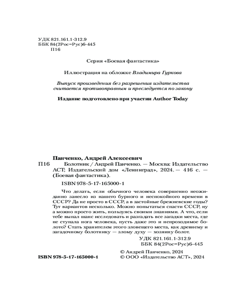 💳 Оплатить за товар можно при получении 🇰🇿 Есть бесплатная доставка по Казахстану 🎁 Копите бонусы с каждой покупки Серия: Боевая фантастика Что делать, если обычного человека совершенно неожиданно занесло из нашего бурного и неспокойного времени в СССР? Да не просто в СССР, а в застойные брежневские годы? Тут вариантов несколько. Можно попытаться спасти СССР, ну а можно просто жить, пользуясь своими знаниями. А что, если тебе выпал шанс исследовать и разгадать все загадки места, где не ступала нога человека, пусть даже это и непроходимое болото? Стать хранителем этого зловещего места, как древнему и загадочному болотнику — злому духу — хозяину болот. |