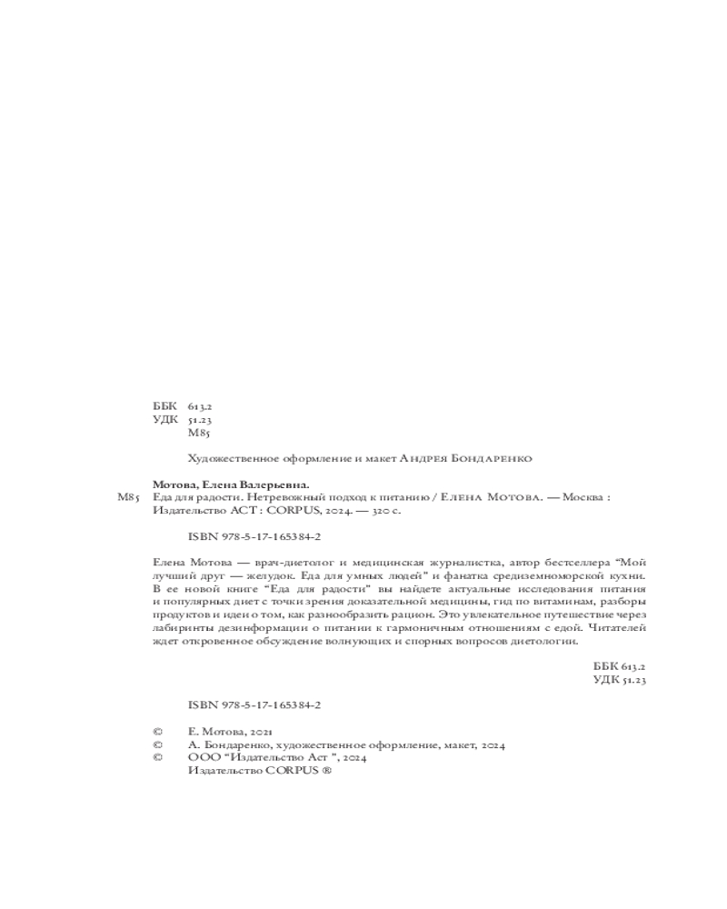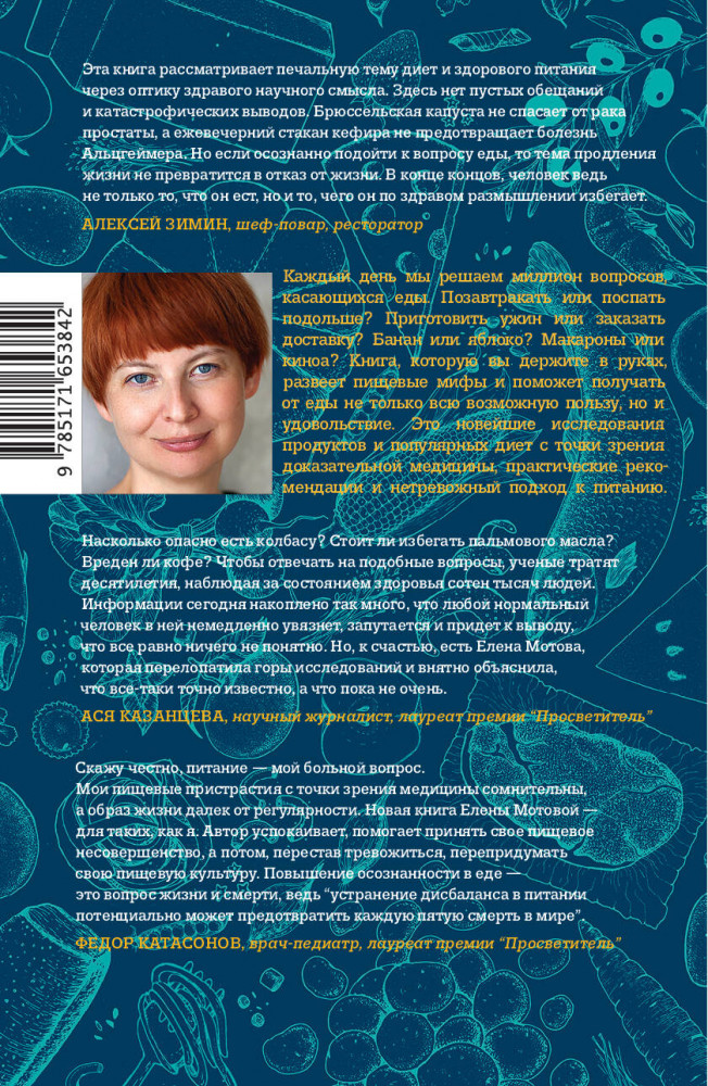 💳 Оплатить за товар можно при получении 🇰🇿 Есть бесплатная доставка по Казахстану от 1 дня 🎁 Копите бонусы с каждой покупки Серия: Элементы (Россия) Елена Мотова — врач-диетолог и медицинская журналистка, автор бестселлера «Мой лучший друг — желудок. Еда для умных людей» и фанатка средиземноморской кухни. В ее новой книге «Еда для радости» вы найдете актуальные исследования питания и популярных диет с точки зрения доказательной медицины, гид по витаминам, разборы продуктов и идеи о том, как разнообразить рацион. Это увлекательное путешествие через лабиринты дезинформации о питании к гармоничным отношениям с едой. Читателей ждет откровенное обсуждение волнующих и спорных вопросов диетологии. |
