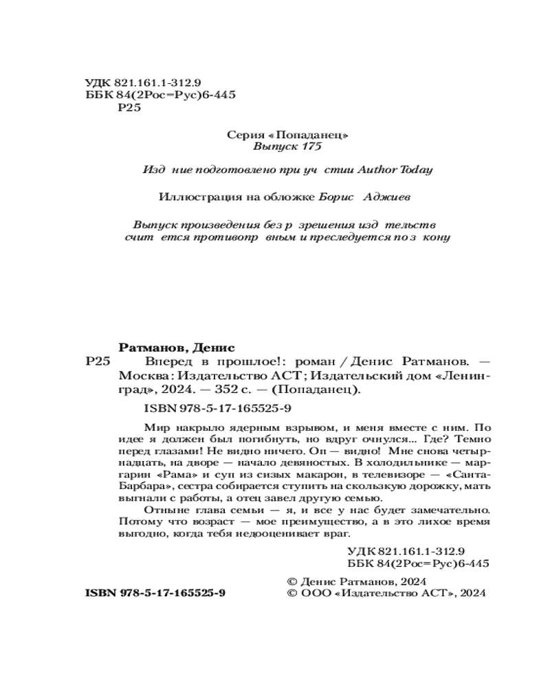 💳 Оплатить за товар можно при получении 🇰🇿 Есть бесплатная доставка по Казахстану от 1 дня 🎁 Копите бонусы с каждой покупки Серия: Попаданец Мир накрыло ядерным взрывом, и меня вместе с ним. По идее я должен был погибнуть, но вдруг очнулся... Где? Темно перед глазами! Не видно ничего. Оп — видно! Мне снова четырнадцать, на дворе — начало девяностых. В холодильнике — маргарин «Рама» и суп из сизых макарон, в телевизоре — «Санта-Барбара», сестра собирается ступить на скользкую дорожку, мать выгнали с работы, а отец завел другую семью. Отныне глава семьи — я, и все у нас будет замечательно. Потому что возраст — мое преимущество, а в это лихое время выгодно, когда тебя недооценивает враг. |
