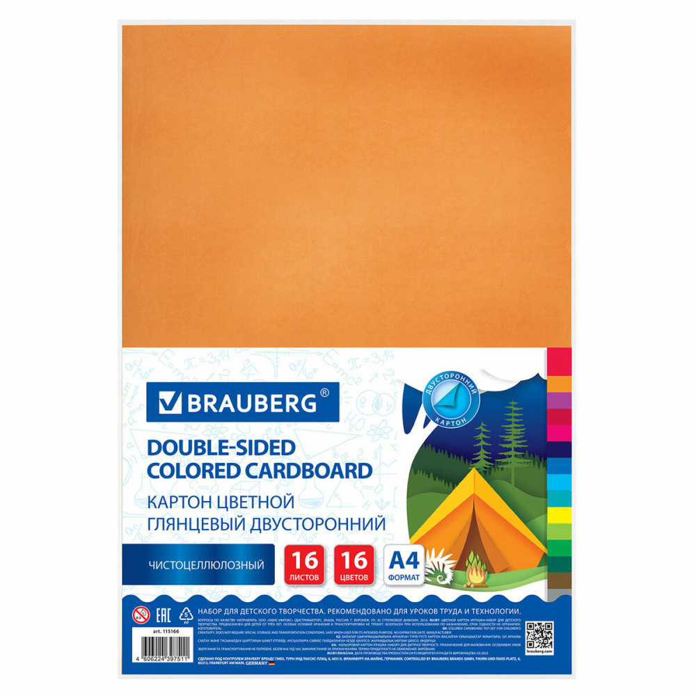 💳 Оплатить за товар можно при получении 🇰🇿 Есть бесплатная доставка по Казахстану от 1 дня 🎁 Копите бонусы с каждой покупки Набор цветного картона Brauberg предназначен для творчества и хобби и может использоваться детьми с трехлетнего возраста. Картон рекомендован для уроков труда и технологии. Творческая инструкция по созданию аппликации на обороте. Двусторонний мелованный картон Braubergс улучшенной прокраской обладает плотностью 200 г/м2, имеет глянцевую поверхность с одной стороны и матовую с другой, благодаря чему сохраняет четкость, яркость и насыщенность оттенка на протяжении длительного времени. Картон легко режется ножницами, сгибается и клеится. Внутренний блок состоит из 16 листов 16 цветов. |