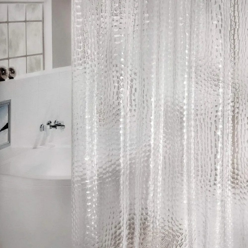 Модель превосходит по долговечности тканевую штору — её не нужно стирать, достаточно просто протереть поверхность влажной тряпкой. Материал изделия устойчив к образованию плесени и препятствует размножению микроорганизмов. Оригинальный универсальный 3D-принт добавит интерьеру ванной изюминки за счет интересного визуального эффекта.