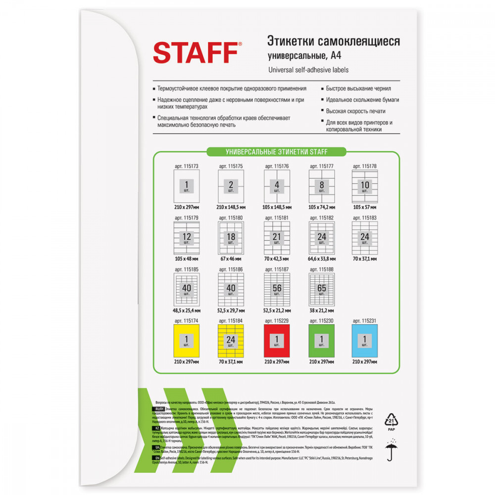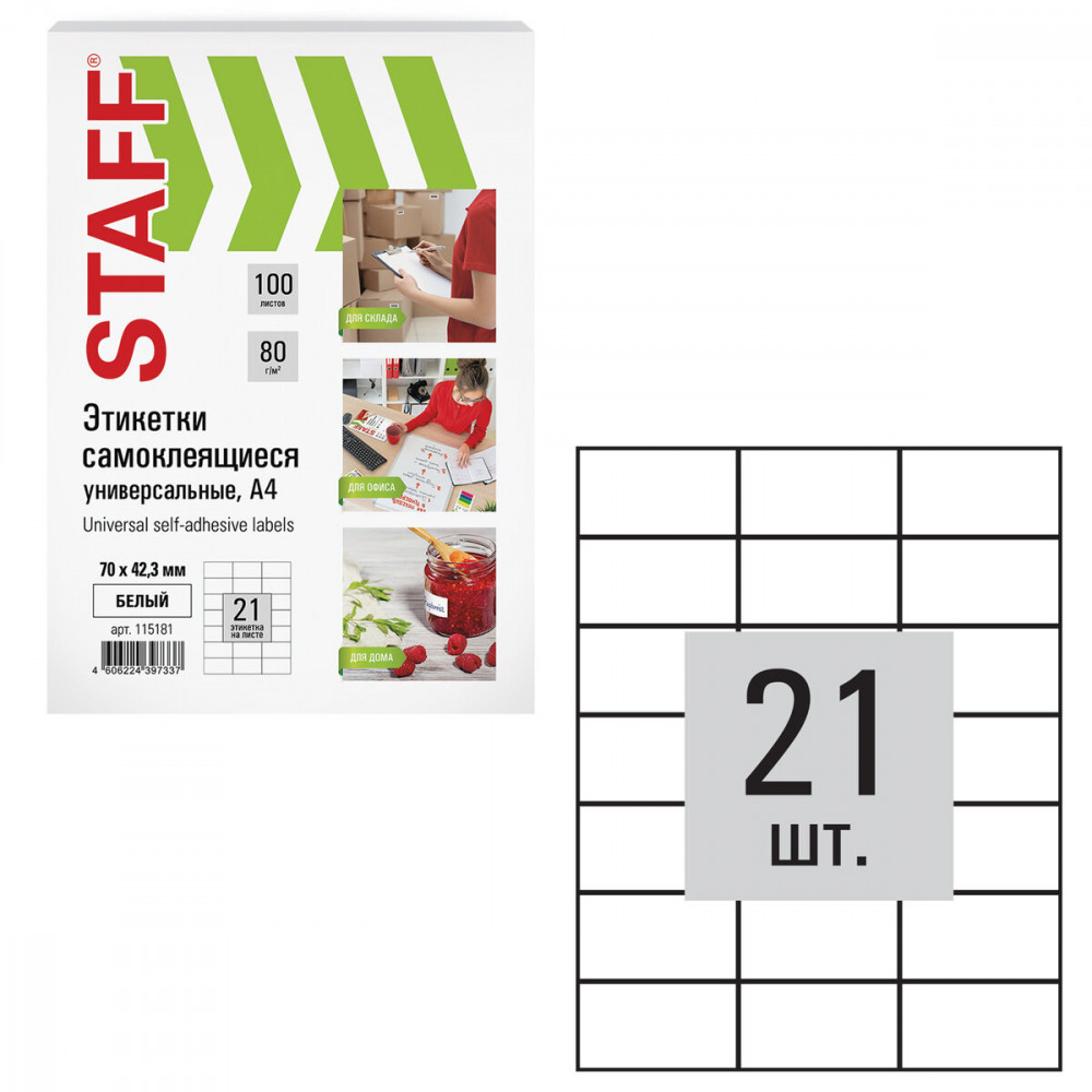 💳 Оплатить за товар можно при получении 🇰🇿 Есть бесплатная доставка по Казахстану от 1 дня 🎁 Копите бонусы с каждой покупки Универсальные самоклеящиеся этикетки STAFF позволят быстро и качественно подготовить адресные наклейки, регистрационные номера, аннотации при помощи лазерного или струйного принтера. Изготовлены из матовой бумаги белого цвета плотностью 80 г/м2. Картонная упаковка содержит 100 листов формата А4, на каждом листе — двадцать одна этикетка размером 70×42,3 мм. |