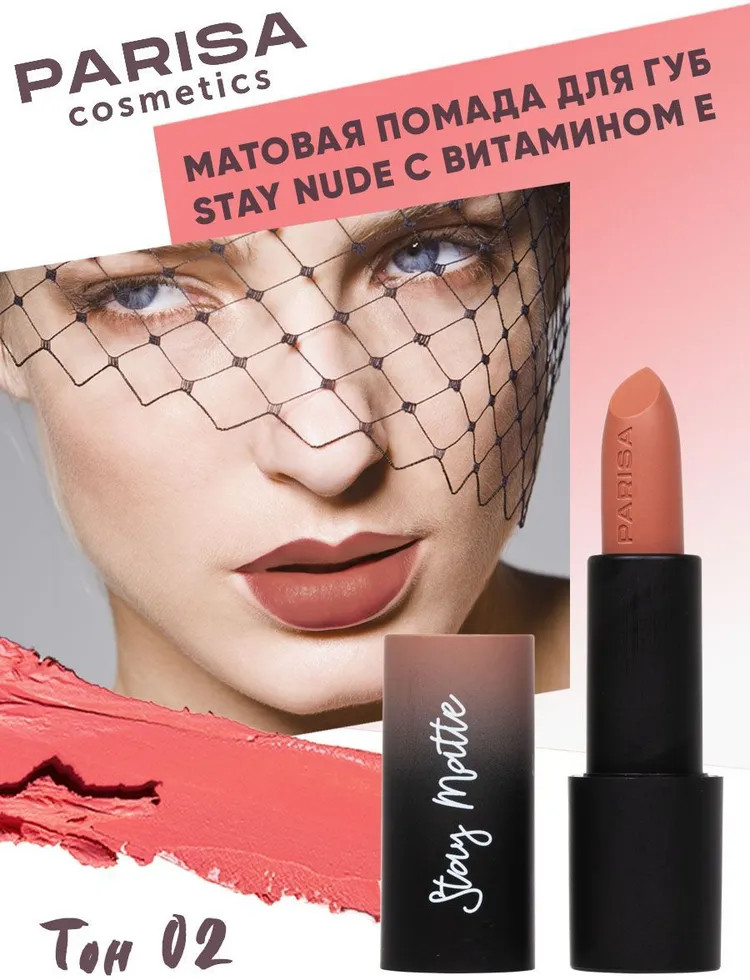 Parisa Cosmetics Помада для губ «Stay matte», тон 02 Персиковый джем