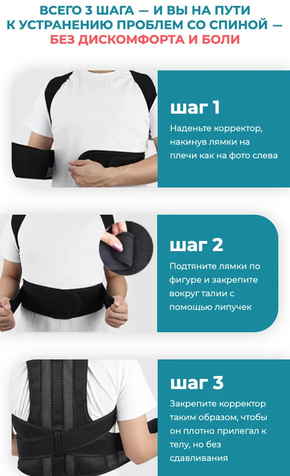 • так как корректор не сковывает движения и незаметен под одеждой, его применение не ограничивает обычные действия отдыха или работы.