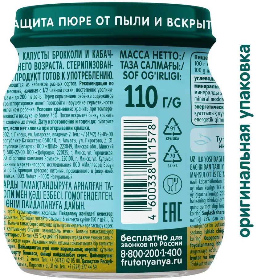 ФрутоНяня Пюре овощное «Брокколи и кабачок»