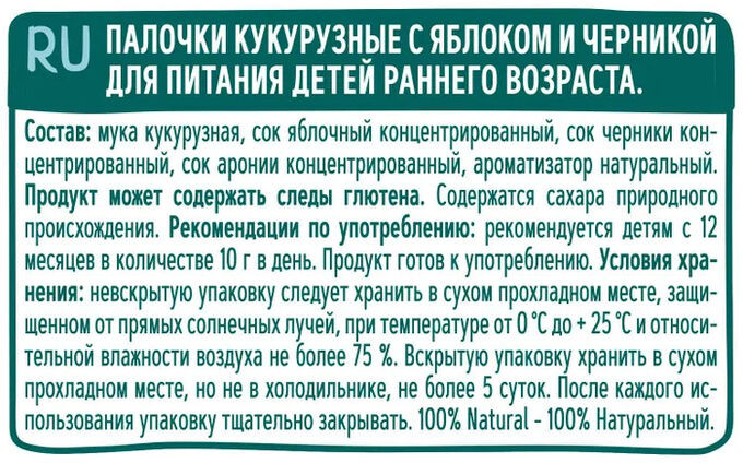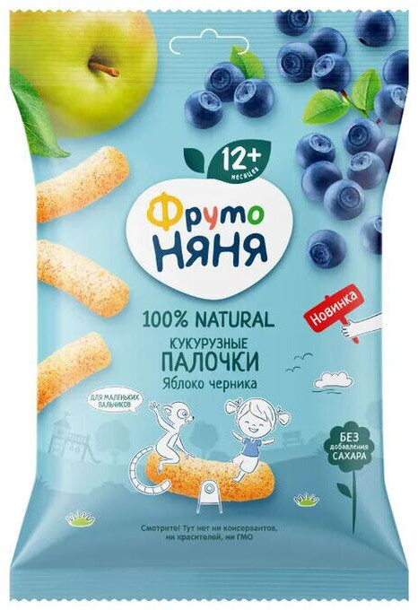 ФрутоНяня Палочки кукурузные с яблоком и черникой