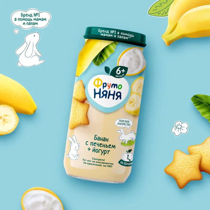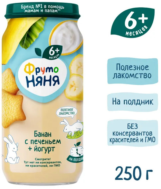 ФрутоНяня Пюре детское «Банан с печеньем и йогуртом»