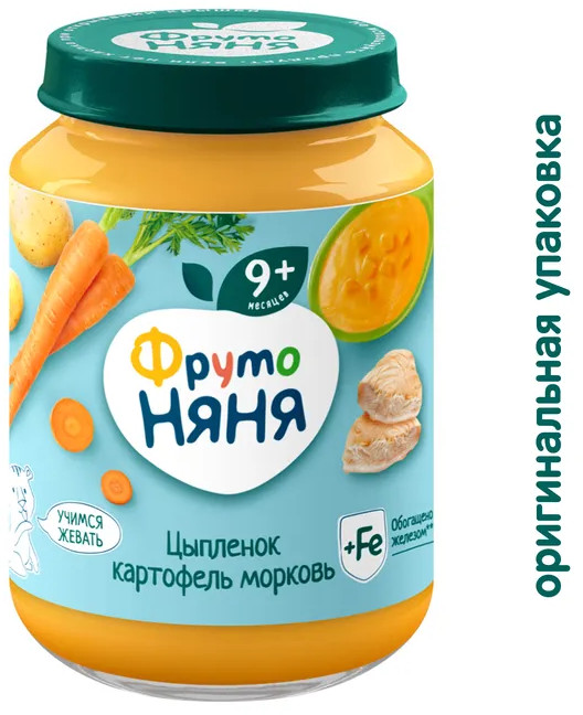 ФрутоНяня Пюре детское мясорастительное с кусочками «Цыпленок, картофель, морковь»