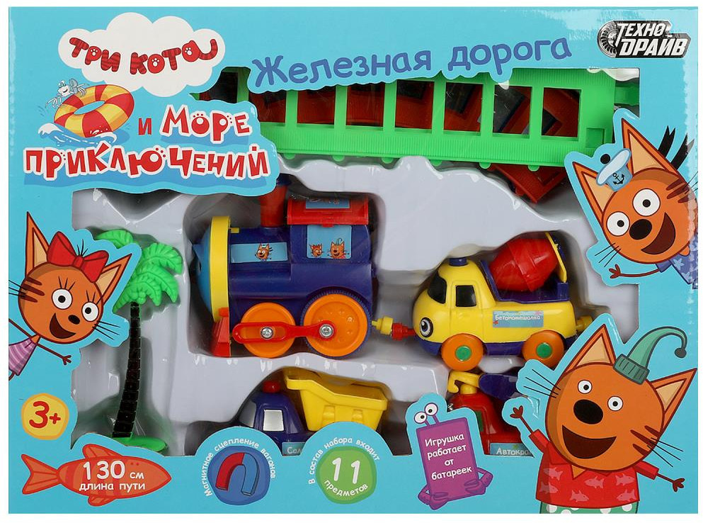 Технодрайв Железная дорогаВ данный момент этот товар отсутствует в продаже. Возможно, у нас найдется аналогичный или похожий товар здесь. Серия: Три кота Железная дорога «Три кота и море приключений» ТМ «Технодрайв» станет отличным подарком для маленьких поклонников мультфильма про любознательных котят. Эта красочная железная дорога непременно понравится малышу. Ребёнок с удовольствием будет запускать поезд по рельсам и наблюдать за его движением, представляя себя в роли машиниста. |