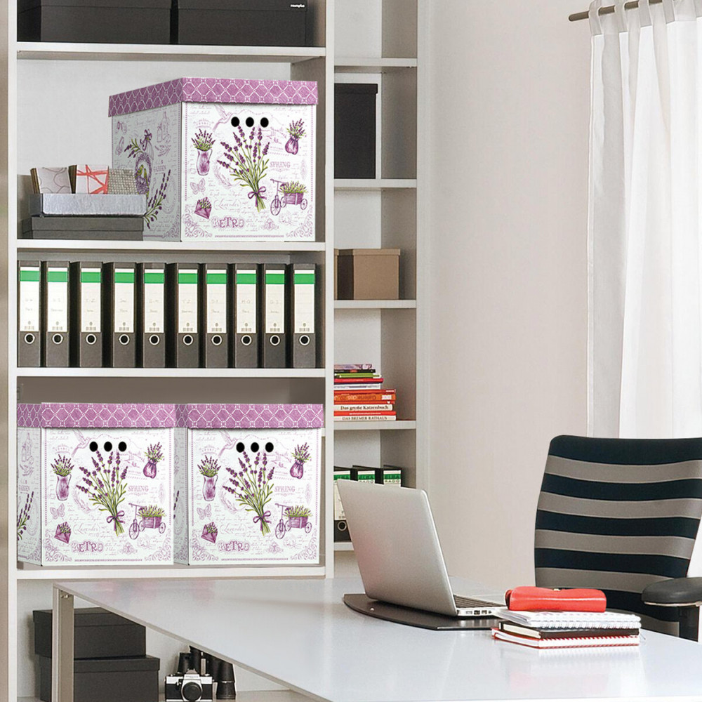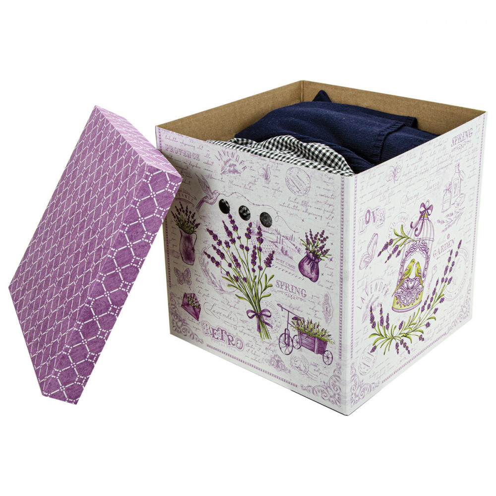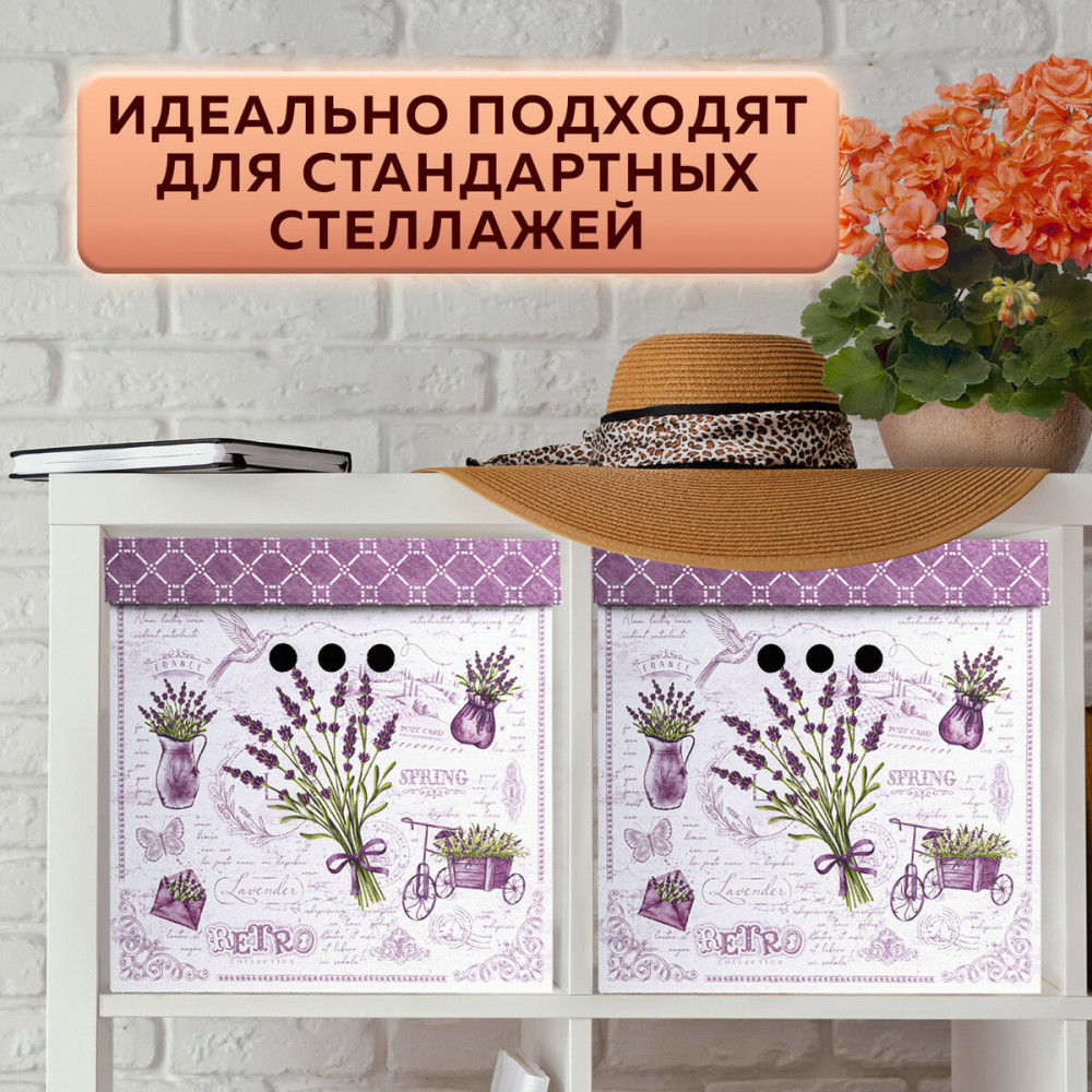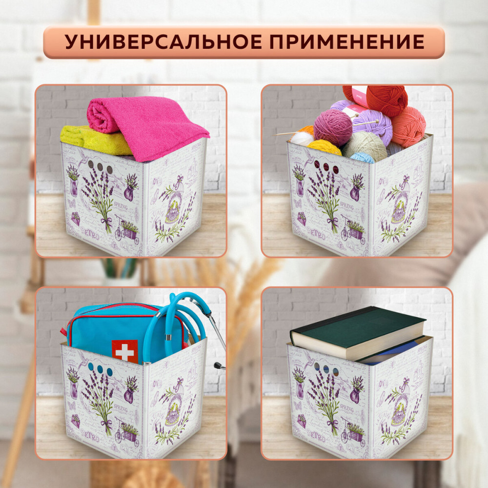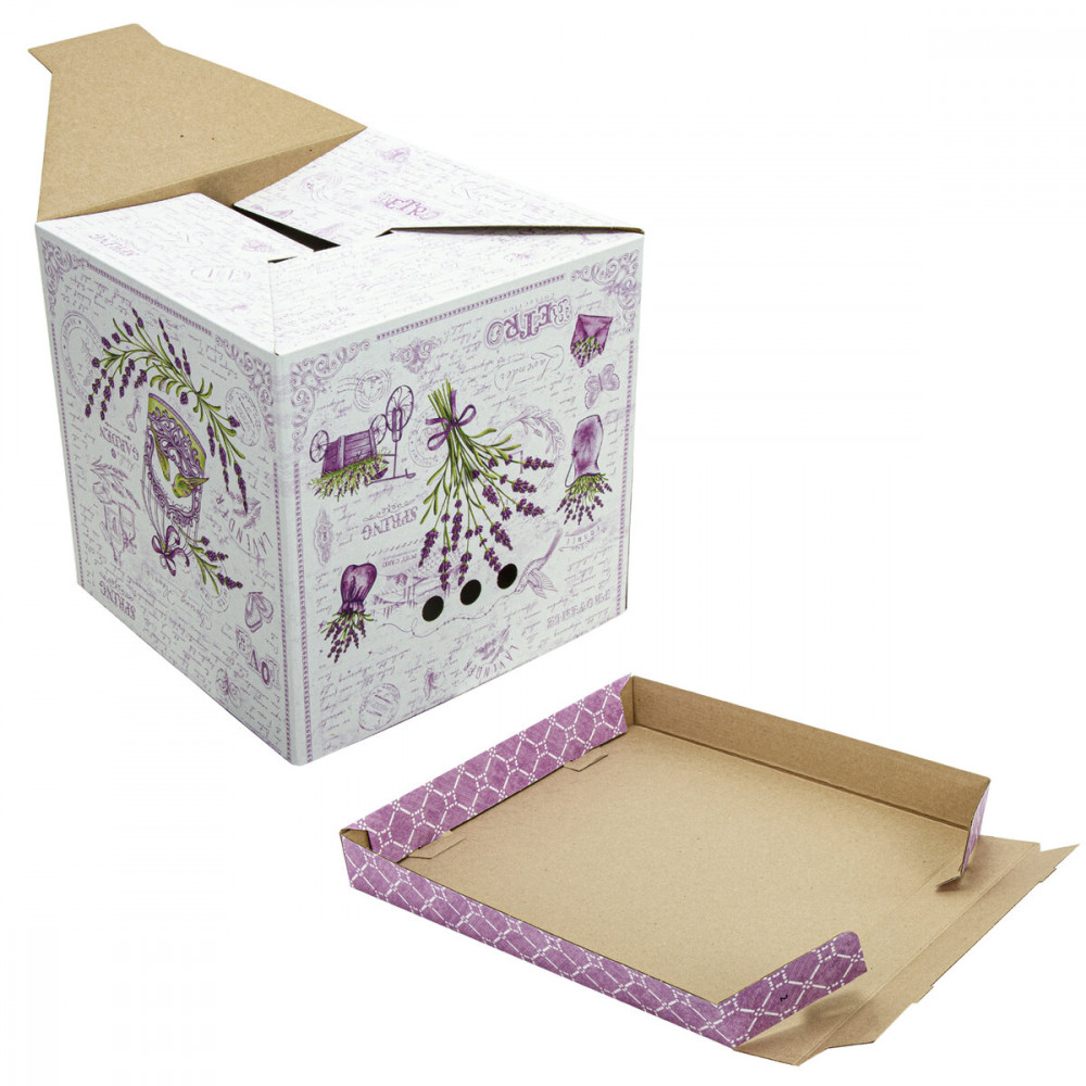В комплект входят 3 короба размером 31.5×31.5×31.5 см со съемными крышками, изготовленные из плотного экологичного микрогофрокартона толщиной 1,6 мм. Короб отлично держит форму, а для удобства перемещения на боковых сторонах имеются круглые отверстия. Разноцветный рисунок в виде лавандовой темы не позволит коробам затеряться на полках и стеллажах в вашей квартире или офисе. Для обеспечения сохранности поставляются в разобранном виде. Пошаговую схему сборки можно найти на обратной стороне вкладыша. Картонные короба — идеальный вариант систематизации ваших документов и мелких предметов и организации открытого пространства.