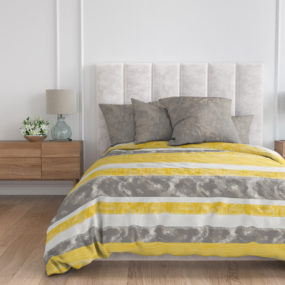 Коллекция «Спал Спалыч» из высококачественной импортной хлопчатобумажной бязи. Ткань прошла процедуру обработки по технологии Perfect Way: мягчение, каландрирование (прокатывание ткани между горячими валами) благодаря чему ткань приобретает гладкость и шелковистый блеск. Процесс превращает круглые нити в плоские, придавая ткани серебристый блеск (Эффект «лаке»). Коллекция дизайнов отличается особенным характером и разнообразием, в ней представлены как классические цветы и европейские дизайны, так и восточные огурцы и разнообразные орнаменты. Ткань — бязь (100% хлопок), плотность 120+/5гр, имеет сертификат OEKO-TEX 100 — безопасный текстиль.