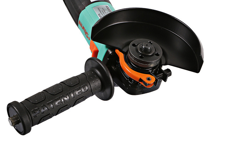 Кроме того, применение шестерен с конической формой зуба позволило снизить уровень шума при работе. Модель проста в эксплуатации и обслуживании. Снабжена быстросъемным защитным кожухом, надежно фиксирующимся при помощи специального зажимного рычага, за счет чего возможна быстрая смена положения кожуха без помощи вспомогательного инструмента, а также удобной патентованной рукоятью со специальным твердосплавным карандашом для нанесения разметки на поверхности любой сложности, включая ржавые, влажные и маслянистые.